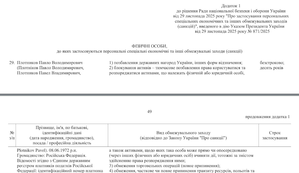 Председатель Совета регионального отделения партии СПРАВЕДЛИВАЯ РОССИЯ, руководитель партийной фракции в Тамбовской областной Думе Павел Плотников был включен в санкционный список Украины. Соответствующий указ издал 29 ноября 2025 года "просроченный" президент этой страны.