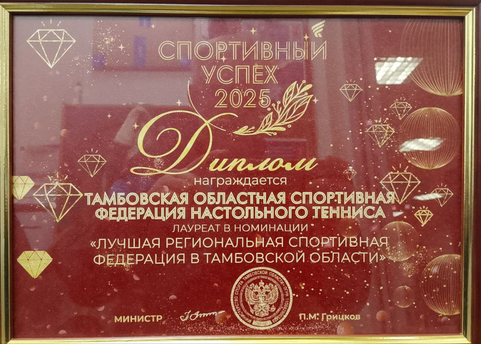 Награду от имени министерства спорта региона вручил министр Павел Грицков. Этот диплом – признание большой системной работы по развитию настольного тенниса на тамбовской земле.