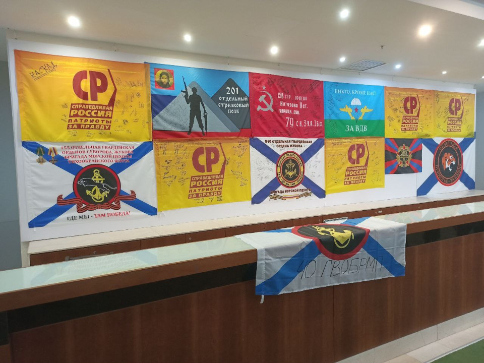В рамках Съезда была представлена экспозиция с картой шевронов и вымпелов воинских частей, получающих поддержку от региональных отделений партии. Эта карта наглядно демонстрирует неразрывную связь между фронтом и тылом в ходе специальной военной операции. Всего на выставку было доставлено около 200 символов воинских подразделений, в числе которых – шеврон военнослужащего морской пехоты и флаг 810-й отдельной гвардейской бригады морской пехоты, привезенные партийцами из Тамбовской области.