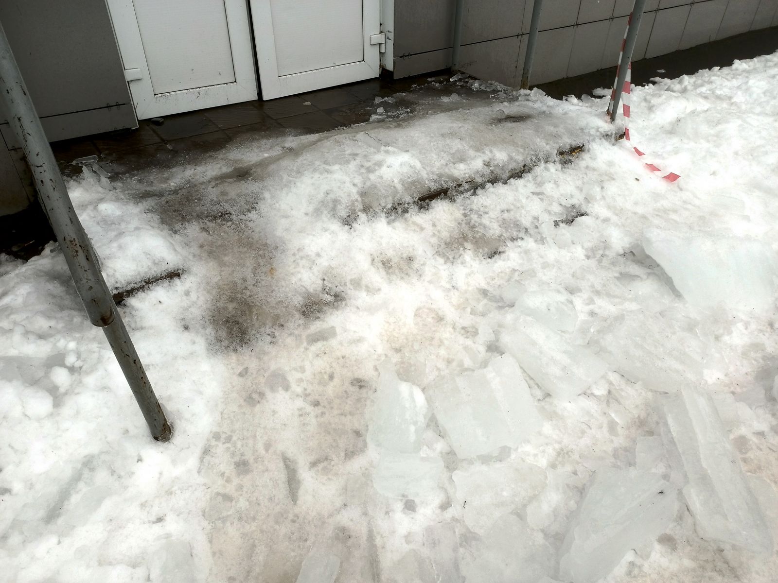 Входы в здания нужно очищать от наледи!